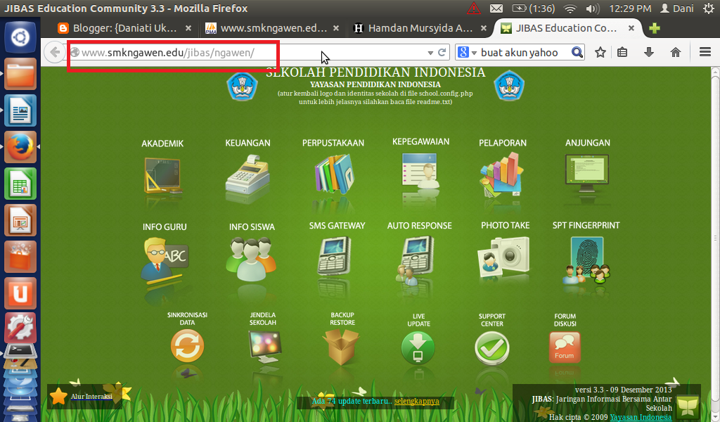 Jika tulisan "Tidak Terhubung dengan Database Jibas" sudah hilang, berarti anda sudah berhasil menginstall Jibas.